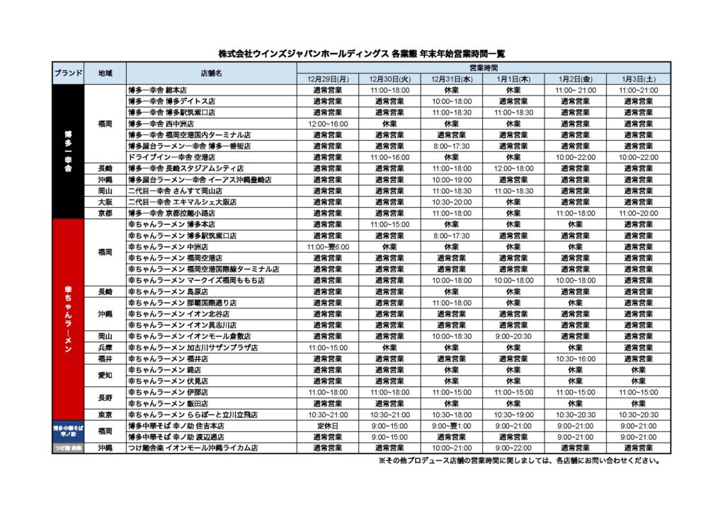 平素より「幸ちゃんラーメン」をご愛顧いただき誠にありがとうございます。「幸ちゃんラーメン」を含む、系列店舗全店の年末年始営業時間をお知らせいたします。